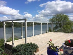 I det første eksempelet ser man at et glassrekkverk med to rettvinklede (90°) ytterhjørner.