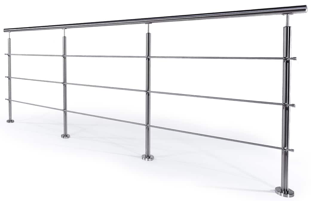 Rustfritt rekkverk med liggende stolper