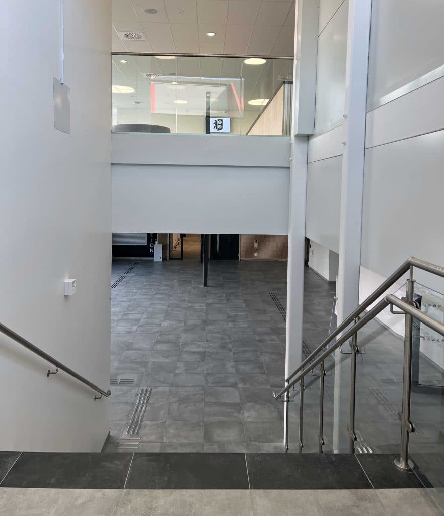 Arena der Rekkverkbutikken har levert stolpefritt rekkverk med sikkerhetskravet 3 k/N.