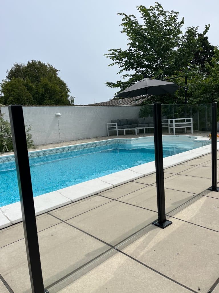 Vår avgrenser med glass er enkel å montere. Se på monteringsinstruksjonene for informasjon om hvordan stolpene skal plasseres i hjørne og ved avslutning.