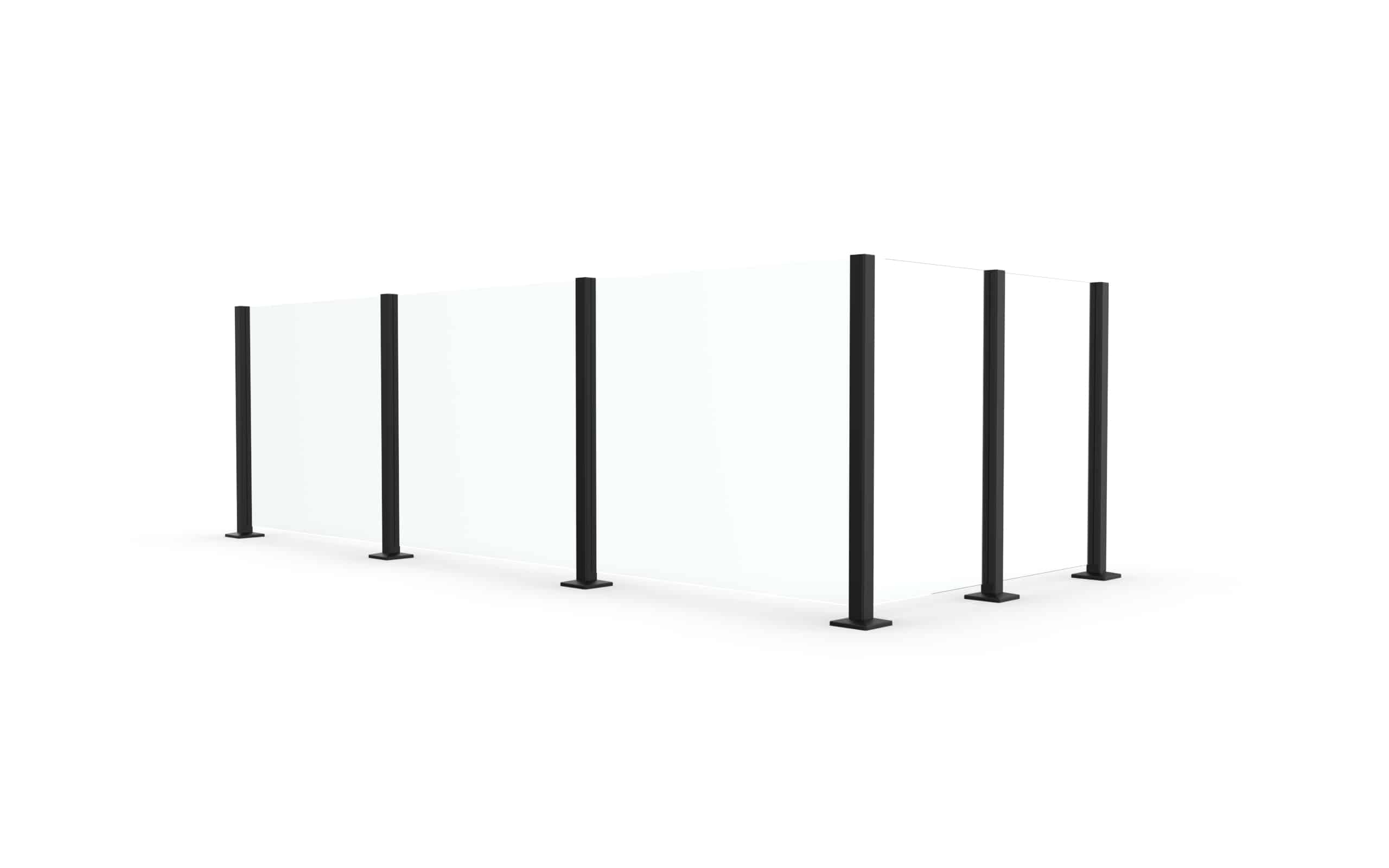 Vår avgrenser med glass kan sammenlignes med «glassrekkverk» hos noen byggvarehus og diverse lavprisvarehus og skiller seg ut på mange måter fra våre andre produkter. Det bestilles i enkeltdeler med fastemål og klasses ikke som et sikkerhetsrekkverk; du velger helt enkelt hvor mange stolper og glass du ønsker. Skruer inngår ikke. Det kjøper du, ut fra hvilket underlag rekkverket skal monteres, hos nærmeste byggvarehus.
