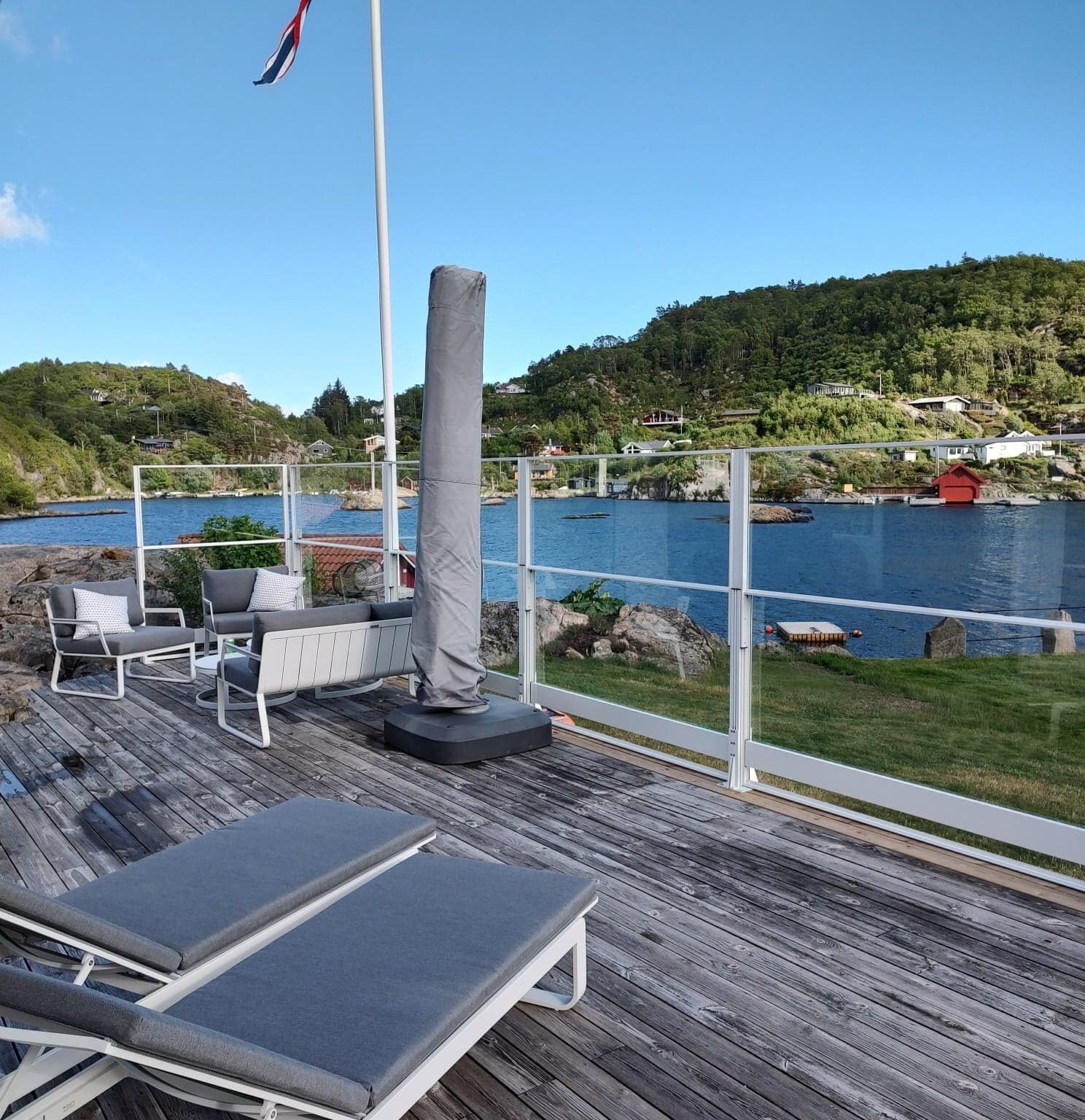 Med vårt hev og senkbare glassrekkverk har du mulighet til å lure værgudene og kunne utnytte din uteplass flere dager i året. Ikke nok med det, det er også trivelig å se på og rammer pent inn ditt utemiljø. Legg til en markise, så har du nesten et komplett uterom.