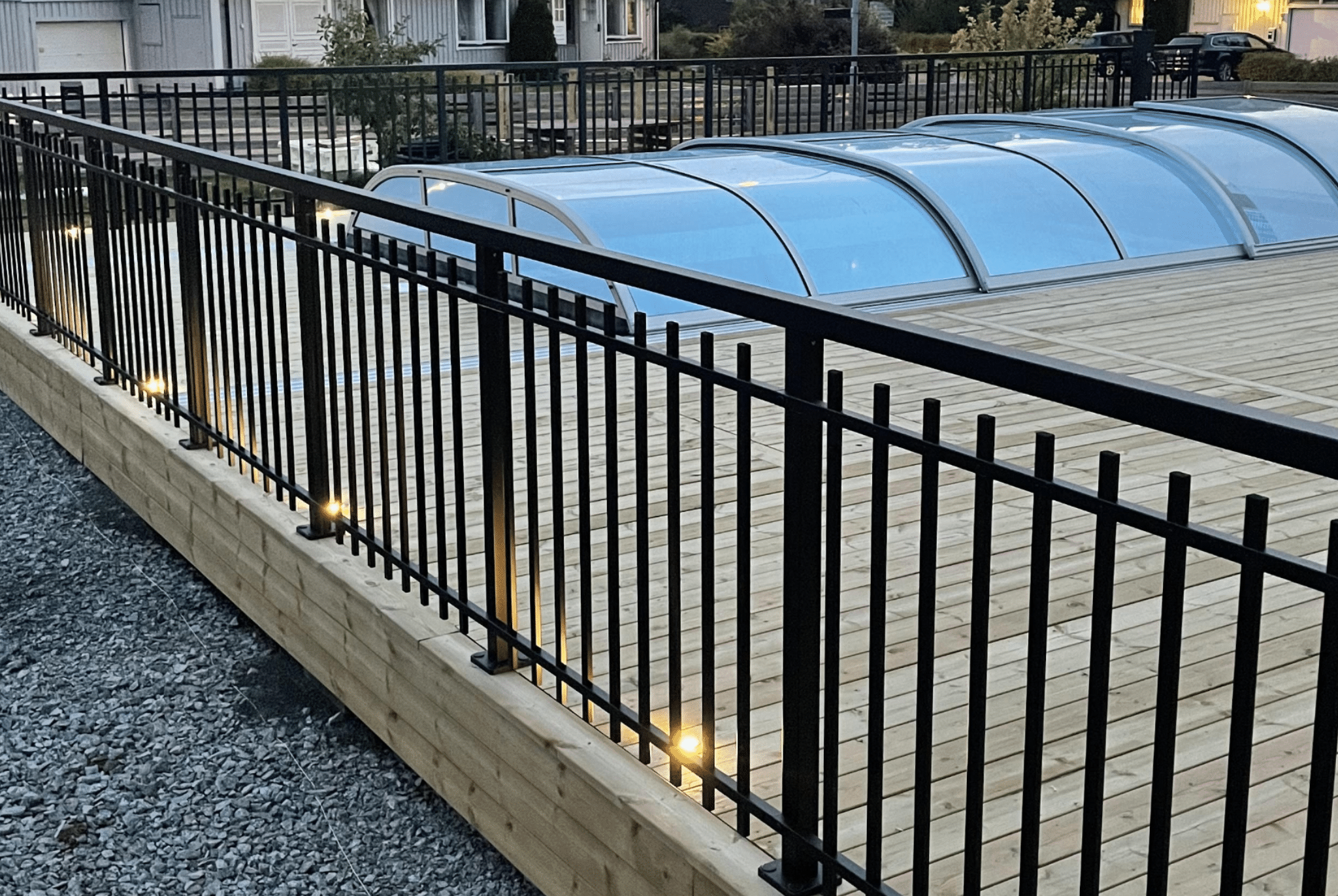 Du tilpasser rekkverket direkte i vår konfigurator – velg farge, høyde, topprekkverk, innfesting og ornament. Du ser prisen direkte og får alt levert hjem, klart til montering.
